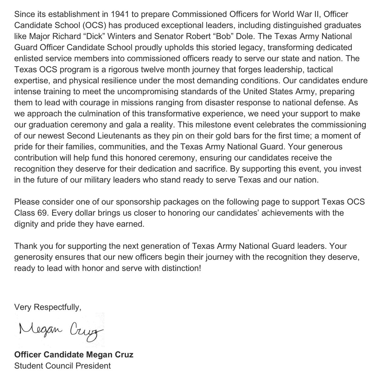 This sponsorship comes with publicity on this website, social media, your name (or the name of your business) in the Gala Program, a Class 69 Challenge Coin, and two seats at the graduation gala!
